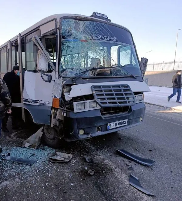 Alınan bilgilere göre, yolda seyir halinde olan Karayollarına ait iş makinesinin kırmızı ışığı geç fark edip frene basınca arkasında bulunan Balkan Dündar yönetimindeki 75 D 0003 plakalı Hastane Dolmuşu buzlu yolda kayarak arkadan çarptı. Yaşanan kazada dolmuşta bulunan 4 yolcu hafif yaralanırken, dolmuş sürücüsü Balkan Dündar yara almadan kurtuldu.