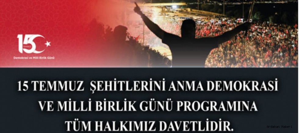 Ardahan Valiliği koordinesinde düzenlenecek olan '15 Temmuz Şehitlerini Anma, Demokrasi ve Milli Birlik Günü' etkinliklerinin programı belli oldu.
