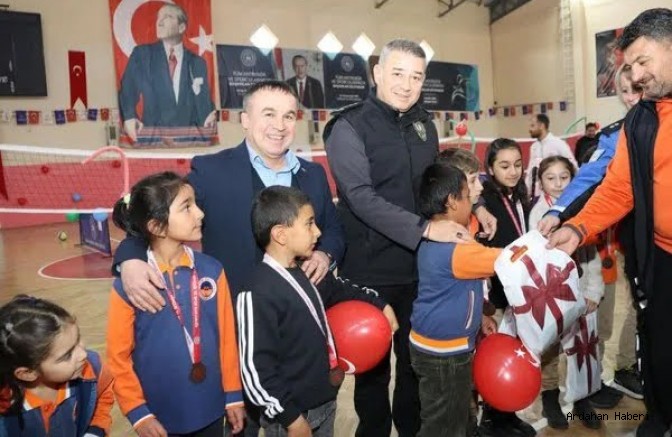 Ardahan Gençlik ve Spor İl Müdürlüğü ile Ardahan İl Emniyet Çocuk Şube Müdürlüğü'nün işbirliğiyle organize edilen etkinlikte, İl Müdürü Ramazan Demir ve İl Emniyet Müdürü Gökalp Şener, çocuklarla birlikte voleybol oynayarak etkinliğe katıldılar. Çocuklar, spor yaparken eğlenmenin tadını çıkarırken, salonun her köşesinde neşeli anlar yaşandı. Spor salonu, çocukların kahkahaları ve neşeli sesleriyle şenlenirken, etkinlik boyunca mutluluk dolu bir atmosfer hâkim oldu. İl Müdürü Ramazan Demir ve İl Emniyet Müdürü Gökalp Şener, çocuklarla birlikte sahada yer alarak onlara destek oldular.