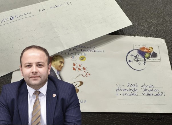 28 Ekim 2002’ de yazdığınız mektubunuzu 21 yıl sonra bugün gurur ve onurla Ardahan Milletvekili olarak teslim aldım. Okuduğum satırlarda gördüm ki henüz 3 Kasım 2002 seçimleri olmadan bu mektubu yazmışsınız. Sizin bu dizelerde hayalleriniz olarak bahsettiğiniz Ardahan bugün sahada vardır. Ardahan’ da bu hayallerinizin hepsi gerçekleşmiştir. Türkiye’nin şu an da en genç milletvekillerinden birisi olarak o dönemde ilimizin en iyi okulu olan Ardahan Anadolu Lisesinde ki bir genç olarak bu önemli mektubu 21 yıl sonra bu makama ulaştırılmak üzere yazmanızdan dolayı size teşekkür ediyorum. 21 yıl önce ki hayallerinizi bugün gerçekleştiren AK Parti hükümeti olarak size ve hemşehrilerime Serhat Ardahan’ın kalan tüm ihtiyaçlarını da bu dönemde tamamlayacağımızın sözünü veriyorum”.