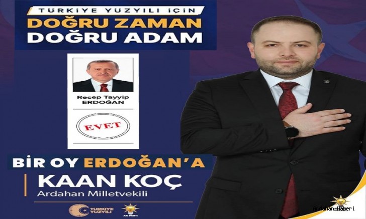 AK Parti’den Ardahan Milletvekili seçilen Kaan Koç, seçim çalışmaları sürecinde ve sandıkta Cumhurbaşkanı Recep Tayyip Erdoğan’a, AK Parti’ye ve kendisine verdikleri destekten dolayı başta Ardahan halkı olmak üzere tüm partililere teşekkür etti.