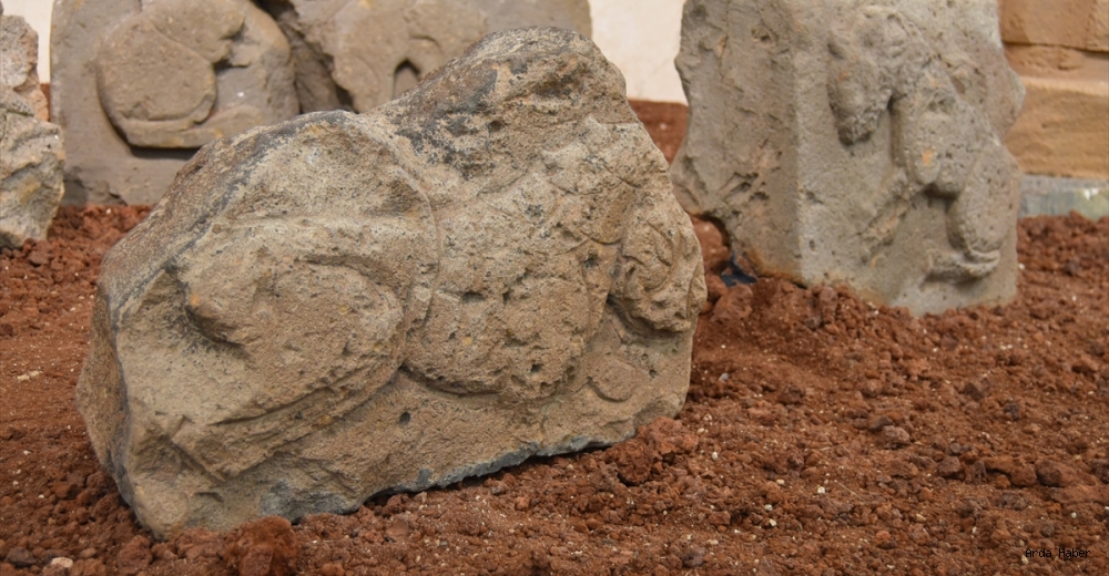 Ani Ören Yeri'nde yapılan kazı çalışmalarında bulunan tarihi eserler ve aslan kabartmalı taşlar Kars Müze Müdürlüğünde sergileniyor.