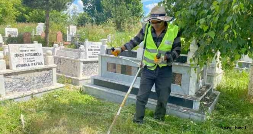 Yoğun yağışlar sonrası uzayan otlarla sarmalanan mezarlıklar, ekiplerce yapılan hummalı çalışmalar neticesinde baştan aşağı güzel bir görünüme kavuşuyor.