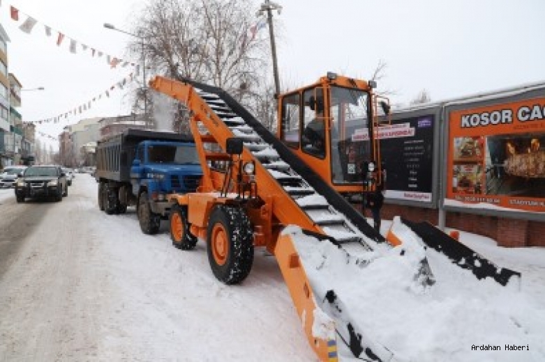 Ardahan Belediyesi'nin karla mücadele ekipleri, kar yağışı nedeniyle kent merkezinde yoğun çalışma gerçekleştirdi. Kar kütlelerinin çok olduğu ana yollar ve ara sokaklardaki kar, belirli noktalara toplanıp, kamyonlara yüklendikten sonra kent dışına taşınıyor. Belediye Başkanı Faruk Demir, kar toplama makinasıyla daha etkin ve seri mücadele için çalıştıklarını belirtti.