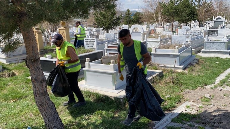 Ardahan Belediyesinden Bayram Öncesi Mezarlıklarda Temizlik