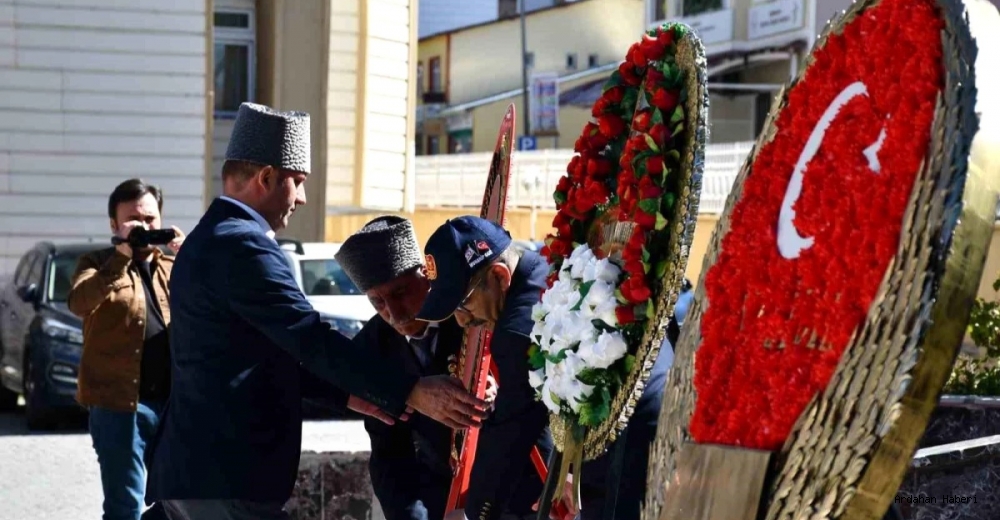 Ardahan Valiliği önündeki Atatürk Anıtı'nda gerçekleştirilen tören, anıta çelenk sunma ile başladı. Törende sırasıyla Valilik, Garnizon komutanlığı, Belediye Başkanlığı ve Gaziler Derneği Ardahan Şube Başkanlığı çelenkleri bırakıldı. Çelenklerin sunulmasının ardından saygı duruşunda bulunuldu ve İstiklal Marşı eşliğinde Türk bayrağı göndere çekildi.
