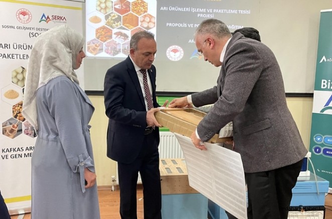 Serhat Kalkınma Ajansı (SERKA) desteğiyle "Arı Ürünleri İşleme ve Paketleme Tesisi Projesi" kapsamında Kafkas Arısı Üretim, Eğitim ve Gen Merkezi Müdürlüğünce temin edilen 350 "polen tuzaklı plastik kovan tabanı" ile 2 bin 500 "propolis tuzağı" kentteki arıcılığın gelişmesi için 40 arıcıya hibe edildi.