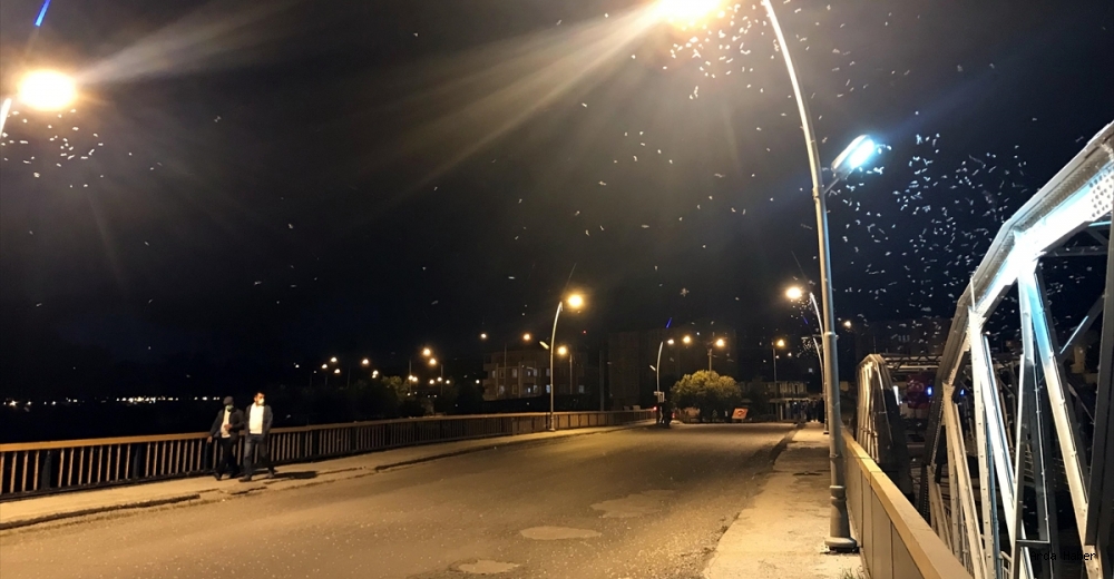 Mayıs sineklerinin sayısı gece saatlerine doğru artarken, vatandaşlar onların uçuşlarını ilgiyle izledi.