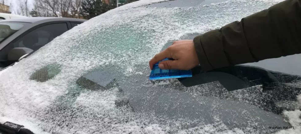 Ardahan da kar yağışı yerini soğuk havaya bıraktı, cadde ve sokaklar buz pistine döndü. Sürücüler ile yayalar, büyük zorluk çekti.