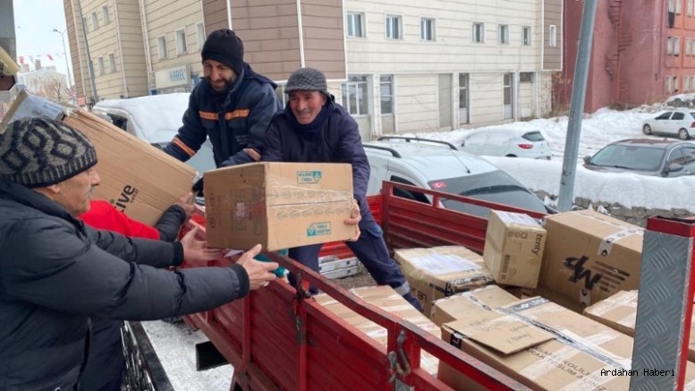 Ardahan Belediyesi öncülüğünde başlatılan yardım kampanyasına çok sayıda vatandaş duyarlılık gösterdi. Ellerinde avuçlarında ne varsa az çok demeden depremzede kardeşleri için yardıma koşan vatandaşlar, tek yürek oldu.
