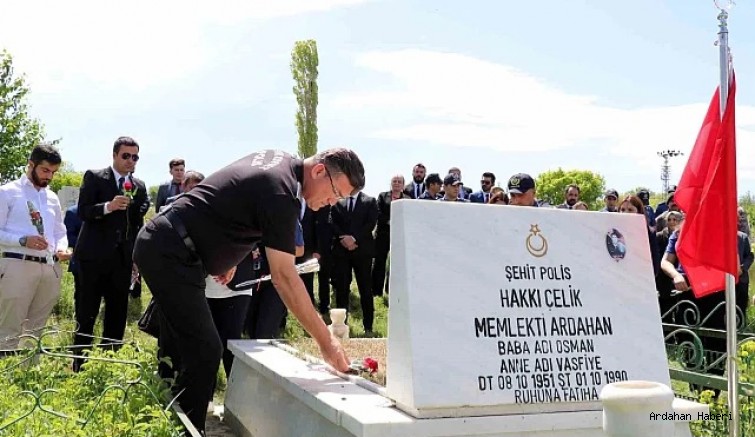 Ardahan'da emniyet mensupları Kurban Bayramı dolayısıyla Halilefendi Mahallesi'ndeki şehitliği ziyaret etti. Ekipler, şehit meslektaşlarının mezarlarına karanfil bırakarak dua etti