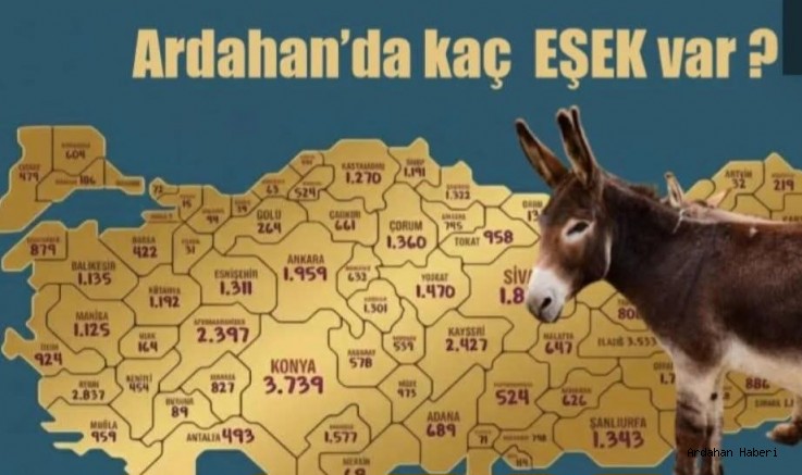 Türkiye İstatistik Kurumu (TÜİK) verilerine göre Ardahan’da tespit edilen eşek sayısı 219 olarak kaydedildi. Bu sayı, Ardahan’ı ülke genelinde eşek varlığı açısından son sıralara yerleştirdi.