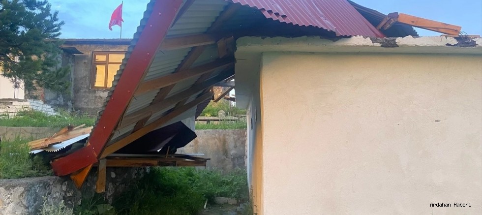 Ardahan'da etkili olan şiddetli rüzgar bazı binaların çatılarının uçmasına neden oldu.