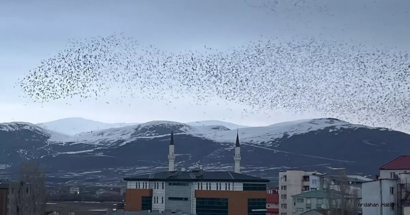 Ardahan kent merkezinde akşam saatlerinde ortaya çıkan dev karga sürüleri, gökyüzünü adeta bir örtü gibi kapladı. Dakikalarca süren görsel şölen, vatandaşlar arasında hem şaşkınlığa hem de kısa süreli paniğe neden oldu.