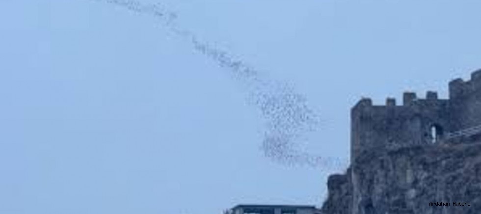 Ardahan’da gün batımıyla birlikte kent merkezinde ortaya çıkan doğal manzara, vatandaşların büyük ilgisini çekti. Akşam saatlerinde gökyüzünde toplanan kuş sürüsü, dakikalarca süren hareketleriyle adeta görsel bir şölen sundu.