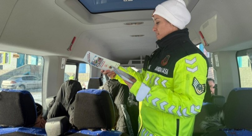Ardahan'da jandarma ekipleri, servis aracı sürücülerine ve öğrencilere yönelik trafik kurallarını içeren bilgilendirme çalışması yaptı.