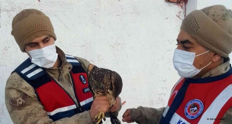Ardahan'da jandarma ekiplerinin donmak üzereyken yaralı bulduğu çakır kuşu tedavisinin ardından doğaya salınacak.