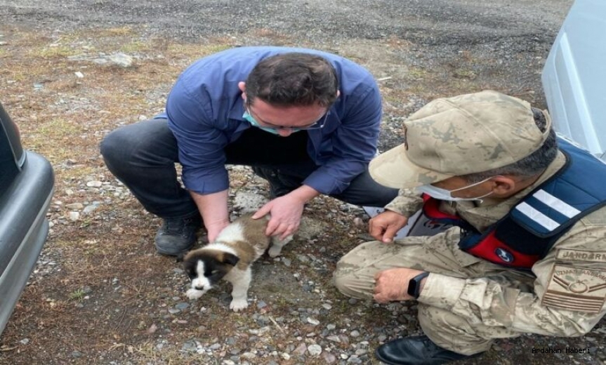Ardahan'a bağlı Çamlıçatak köyünde jandarma ekiplerinin yaralı bulduğu yavru köpek tedavi edildi.