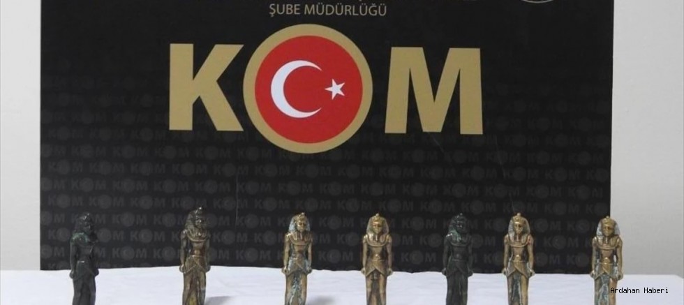 Kazı malzemeleri ve kazı alanındaki heykel ile sikkelere el koyan polisler, şüphelileri gözaltına aldı.