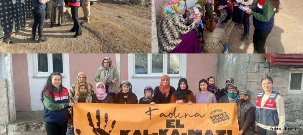 Ardahan’da jandarma ekipleri, “Kapı kapı KADES” projesi kapsamında köylerde kadınları KADES uygulaması hakkında bilgilendirdi.