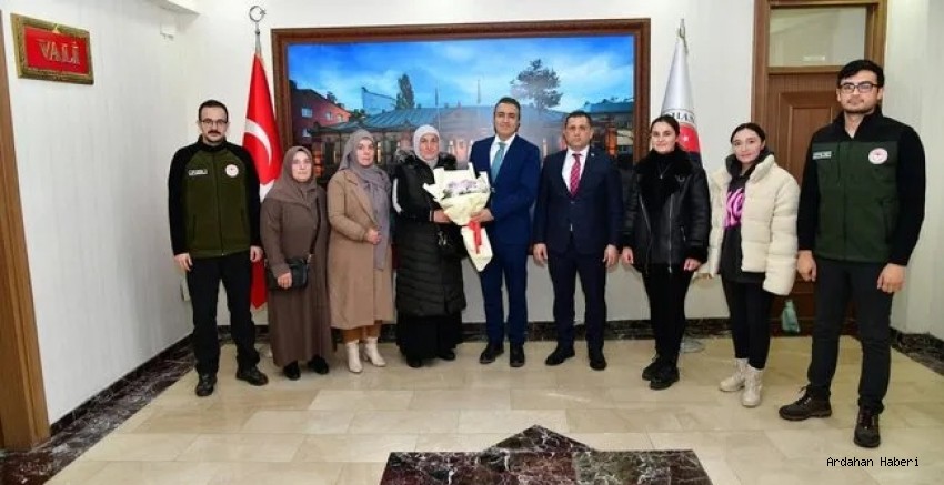 Ardahan Valisi Hayrettin Çiçek, "Süte Değer Katan Kadınların Yolculuğu" projesi kapsamında Tarım İl Müdürlüğü bünyesinde eğitim alan kadın üreticileri Tarım ve Orman Müdürü Muhammet Fatih Cineviz ile birlikte makamında kabul etti.