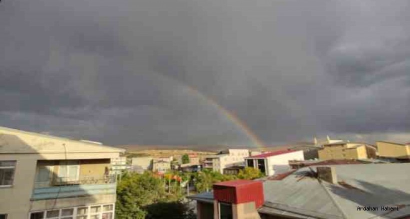 Ardahan'da yağan yağmurun ardından tarihi kalenin üzerinde ortaya çıkan rengarenk gökkuşağı görenleri adeta büyüledi.