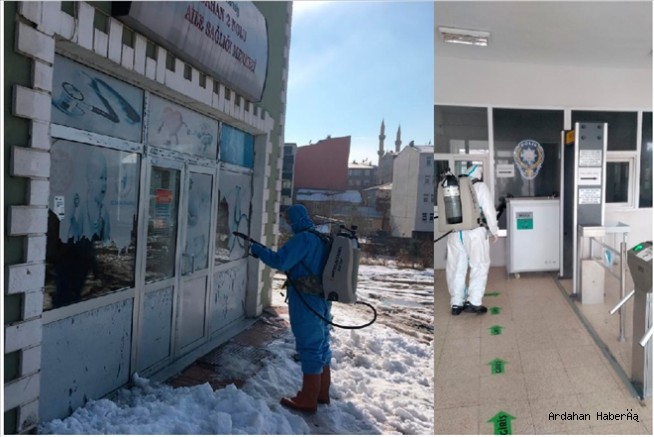 Ardahan´da yeni tip koronavirüs (Kovid-19) tedbirleri kapsamında, kamu kurum ve kuruluşlarda dezenfekte işlemi başlatıldı.