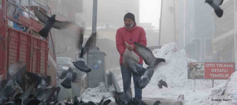 Türkiye’nin en soğuk illerinden olan Ardahan’da birçok esnaf, kışın kentin karla kaplanması ve soğuk hava yüzünden aç kalan güvercinleri her sabah buğday ve arpa ile besliyor. Doğu Anadolu’da kenti beyaza bürüyen kar yağışının ardından etkisini artıran ve zaman zaman hava sıcaklığının sıfırın altında 20 dereceye düştüğü Ardahan’daki olumsuz hava şartları vatandaşların yanı sıra yaban hayatını da olumsuz yönde etkiledi. Kentte etkili olan dondurucu soğukların etkisini sürdürmesi nedeniyle yiyecek bulmakta güçlük çeken ve donma tehlikesi geçiren güvercinlerin imdadına ise esnaf yetişiyor. Soğuklar nedeniyle olumsuz etkilenen güvercinlerin aç kalmaması için her gün kilolarca arpa ve buğday esnaf tarafından belli bölgelere bırakılıyor.