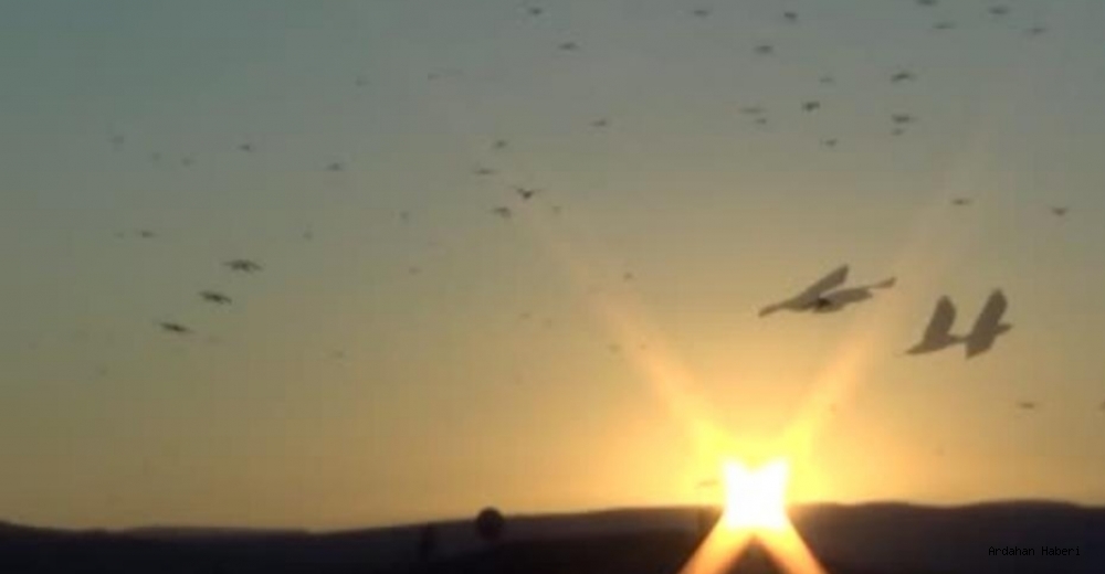 ARDAHAN'da, yaklaşık 10 ay önce yaşanan karga istilası dün akşam saatlerinde yeniden başladı. Havaların soğumasıyla birlikte bir anda beliren binlerce karga kentin üstünü kara bulut gibi kapladı.