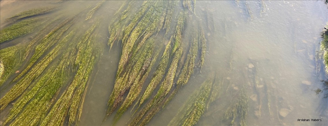 Nehrin tarihi Ardahan Köprüsü ile Millet Bahçesi bölgelerinde yoğun yosun oluştu.