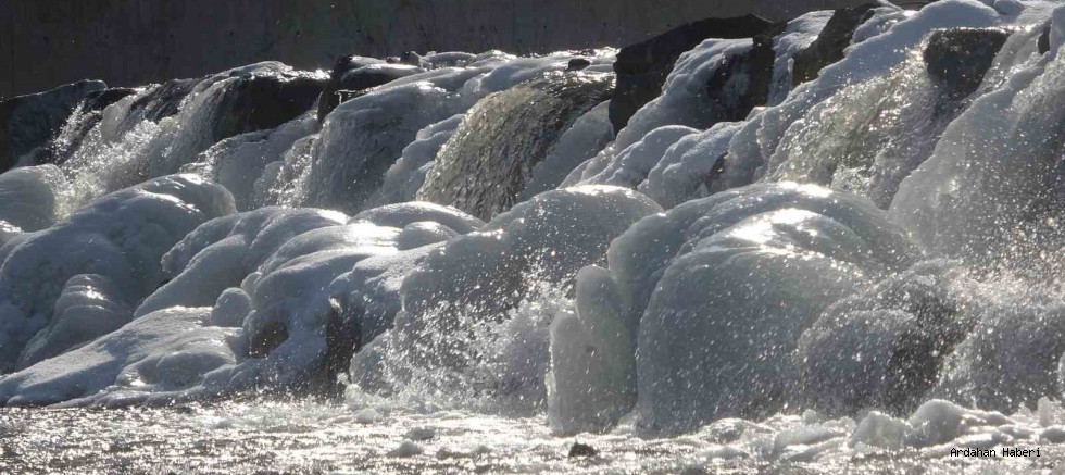 Soğukların etkili olduğu Ardahan’da Kura Nehri’nin devamında kurulan sette akan su buz tuttu. Buz tabakaları oluşan Kura Nehri’ndeki görüntüler Antarktika’yı akıllara getirdi.