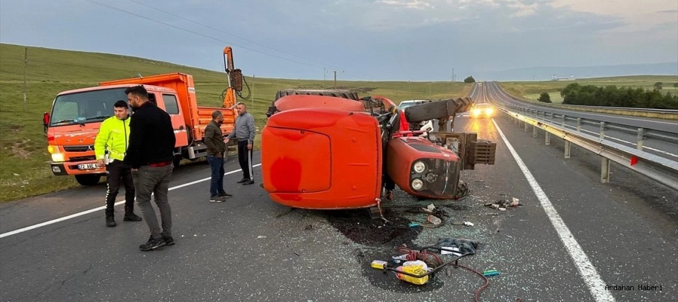 Alpay K. yönetimindeki 36 AAH 510 plakalı kamyonet ile Hüseyin K. idaresindeki 08 HD 058 plakalı traktör, Ardahan-Kars kara yolu üniversite kavşağında çarpıştı.