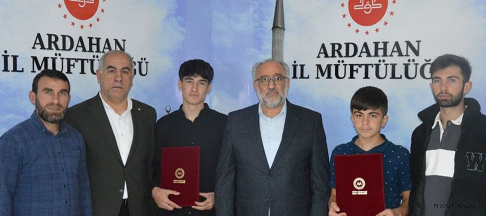 Ardahan İl Müftülüğüne bağlı Hafızlık Kur’an Kursu'nda hafızlık eğitimini başarıyla tamamlayan öğrenciler, Diyanet İşleri Başkanlığı tarafından düzenlenen Hafızlık Tespit Sınavı'nda gösterdikleri üstün başarı ile "Hafızlık Belgesi" almaya hak kazandı.