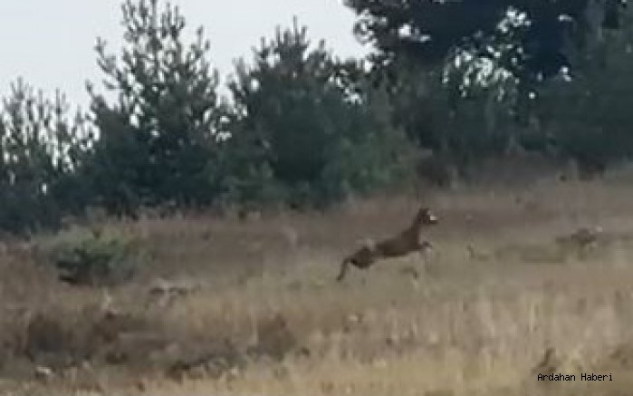 Çamlıçatak ormanlık alanında zıplayarak ilerleyen ceylanı fark eden Baran Can Yılmaz isimli vatandaş, ceylanı cep telefonu kamerası ile görüntüledi.