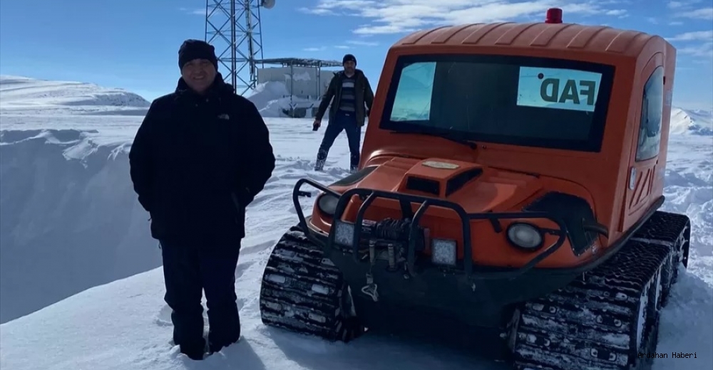 Karla kaplı Ardahan'da Türk Telekom ekibi, arıza yaşanan vericiye, İl Özel İdaresine ait paletli (snowtrack) aracıyla ulaştırıldı.