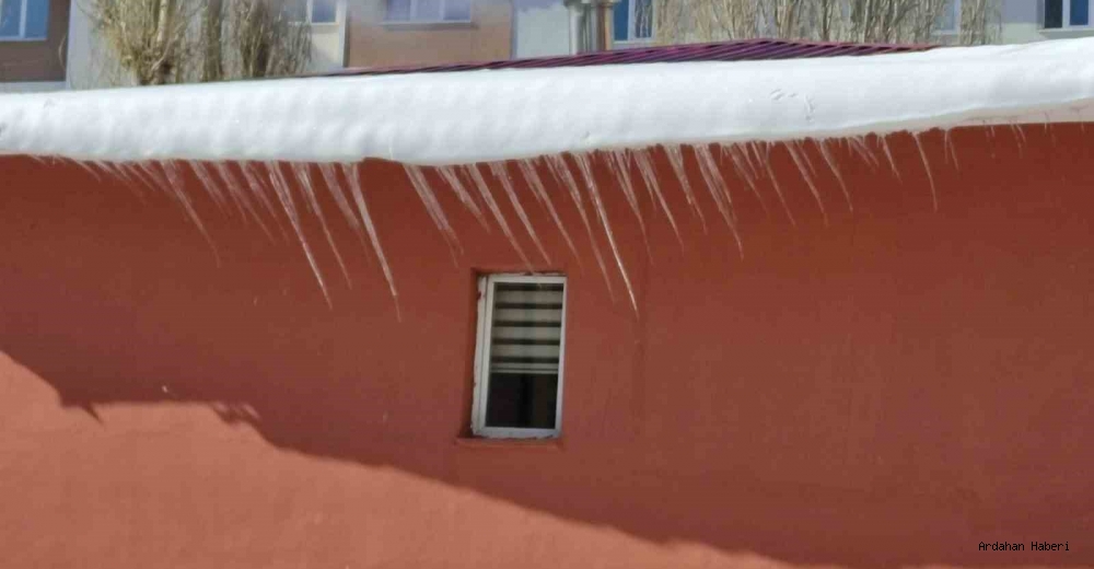 Ardahan'da soğuk hava etkili oluyor: Çatılarda buz sarkıtları oluştu