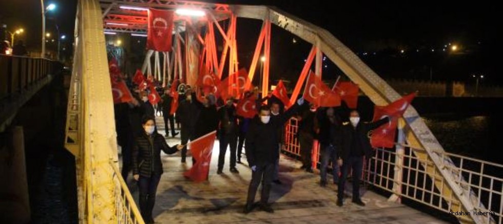 Ardahan Belediye Başkanı Faruk Demir ve yaklaşık 50 kişinin katıldığı kutlamada saat 21.00'de İstiklal Marşı okundu ve saygı duruşunda bulunuldu. Daha sonra 'Sarı saçlım mavi gözlüm' şarkısını seslendirerek mini bir konser Başkan Faruk Demir katılımcılarla birlikte kent merkezinde tur attı. Sık sık sosyal mesafe uyarısında bulunan Başkan Demir, "Bu toprakların Türk yurdu olduğunun bütün dünyaya haykırmış bir ecdadın torunlarıyız. Bu toprakları bize yurt yapan Sultan Alparslan'dan başlayarak, Fatih'e kadar ve son Türk Cumhuriyeti olan Türkiye Cumhuriyetini kuran Mustafa Kemal Atatürk'ümüzün ve aziz silah arkadaşlarının hatırası önünde saygıyla eğiliyoruz. Ne mutlu ki bize bayrağımız, ezanımız, toprağımız, sınırımız, pasaportumuz var. 1923 öncesi gibi bu köprüde başka milletler olacaktı. Bu tarihi Kura Köprüsü, Ruslar tarafından iki bomba atılarak buradaki 300 vatandaşımız Kura Nehrinde boğularak ölmüşlerdi. Biz bugün onların da hatıralarını yad ediyoruz, Ne mutlu ki bize Türkiye'miz var. Ne mutlu ki bize bağımsız Türkiye Cumhuriyetimiz var" dedi.