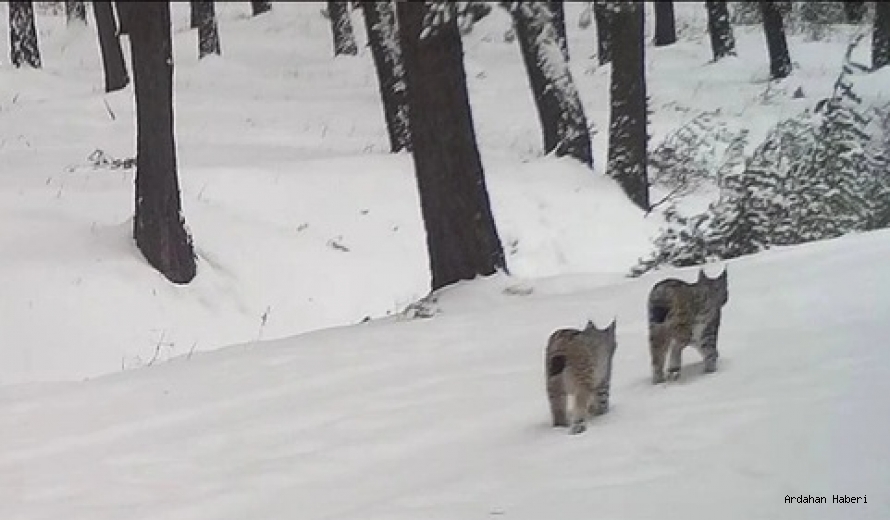 Ardahan'da nesli tehlike altında bulunan iki vaşağın görüntüsü, fotokapanla kaydedildi.