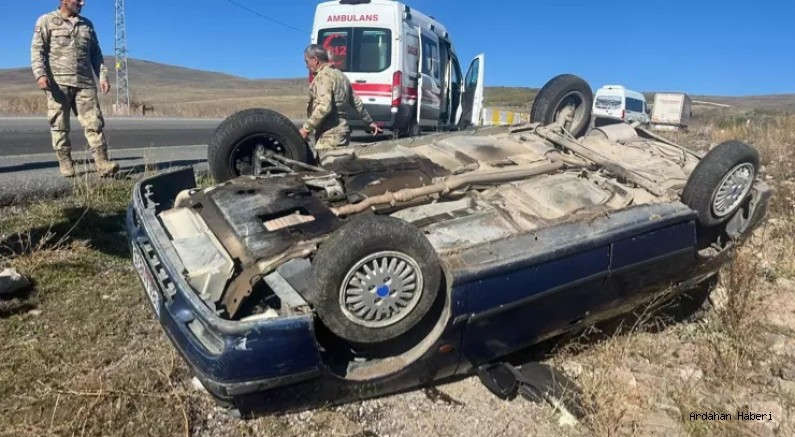 Ardahan-Artvin kara yolunun Yukuşdiki köyü mevkisinde meydana gelen kazada bir otomobil devrildi, 4 kişi yaralandı.