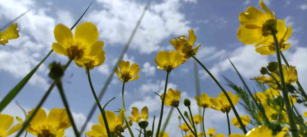 Sarı renkli çiçekler Ardahan ovasını renklendirdi. Tüm ovayı sarıya boyayan çiçekler adeta kartpostallık görüntüler oluşturdu.