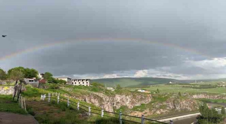 Ardahan’da yağmur sonrası ortaya çıkan gökkuşağı görsel şölen sundu.