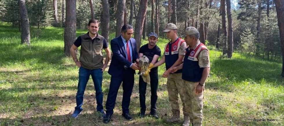 Ardahan'da bir süre önce yaralı halde bulunan puhu, tedavisinin ardından doğaya salındı.