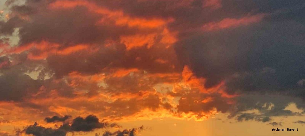Ardahan’da sabah saatlerinde kentin üzeri kızıla bürünürken, gökyüzünde oluşan manzarayı görenler ise gözlerini alamadı.