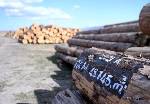 Orman sınırındaki köylülerce Ardahan Orman İşletme Müdürlüğünün verdiği belli ücret karşılığında kesme, taşıma ve istifleme çalışması yapılan sarıçamlar, açık ihale usulü ile iç pazarda satışa sunuluyor.