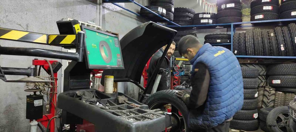 Kentin yüksek kesimlerinde etkili olan kar yağışı sonrası lastik satıcıları ve tamircilerinde yoğunluğa neden oldu. Ardahan’daki lastik satıcı ve tamircileri, kış lastiği takmak isteyen müşteriler için gün boyu mesai harcıyor.