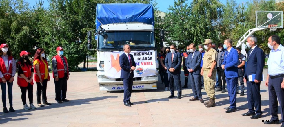 Valilik koordinesinde İl Afet ve Acil Durum ( Afad ) Müdürlüğünce "Ben de Varım" sloganıyla başlatılan kampanya kapsamında kamu kurumları, sivil toplum kuruluşları ve hayırseverlerin desteğiyle toplanan gıda ve ihtiyaç malzemeleri araçlara yüklendi. Valilik bahçesine getirilen yardım malzemeleri, Ardahan Valisi Hüseyin Öner, İl Jandarma Komutanı Ali Naci Aldemir, İl Emniyet Müdür Vekili Osman Sezen, AFAD Müdürü Mehmet Nuri Değişman, Kızılay Başkanı Ahmet Ballı ve diğer ilgililerin katılımıyla sel bölgesine uğurlandı.
