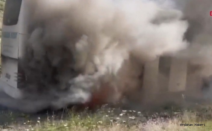 Ardahan'dan yolcu alıp hareket eden yolcu otobüsü, saat 16.00 sıralarında Tortum ilçesi Aksukapı rampasında birden alev aldı.