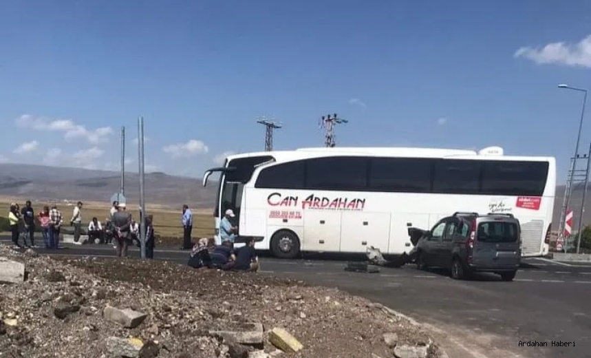 Kavşakta meydana gelen kazada yolcu otobüsü ile otomobil çarpıştı. Kazada yaralanan olmazken araçlarda maddi hasar medyana geldi.