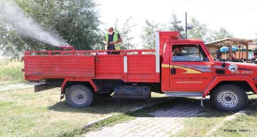 Yaz ayları ile birlikte park ve bahçelerde bakım çalışmaları yürüten Ardahan Belediyesi ekipleri, şimdi de rekor derecelere ulaşan sıcaklıklar dolayısıyla ağaçlar ile yeşil alanlarda çoğalan haşerata yönelik mücadele başlattı. Yapılan yoğun ilaçlama ile uçkun haşere ve vektörün olumsuz etkilerinin önüne geçildi.