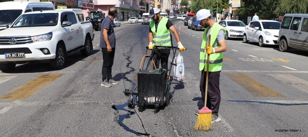 Ardahan’da şehir içi asfalt yollarda oluşan bozulmaları ortadan kaldırmak için belediye ekiplerince başlatılan sıcak asfalt yama çalışmaları tüm hızıyla sürüyor.